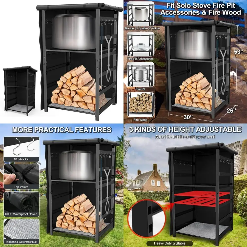 Storage Cabinet for Solo Stove Yukon, Bonfire, Ranger, and Other Smokeless Fire Pit Models with Waterproof Cover