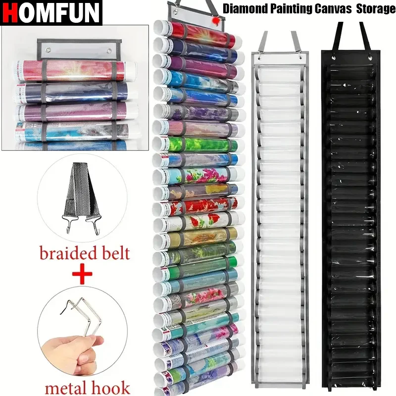 HOMFUN Large Capacity Canvas Organizer - Diamond Painting Supplies Storage Hanging Rolls Holder, Adjustable Shelf, Wall Mounted