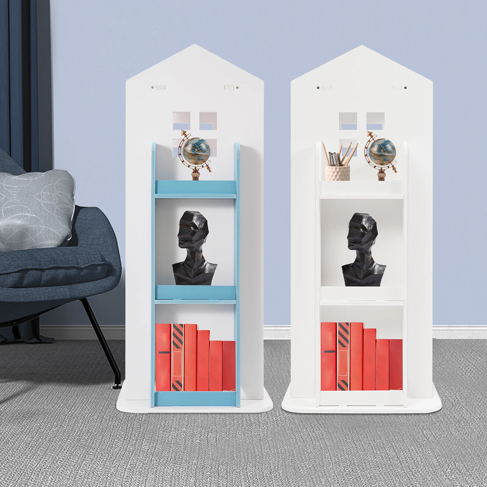 360° Rotating House Bookcase 3 Tier Swivel Bookshelf Stackable Bookcases Organizer Book Display Shelf