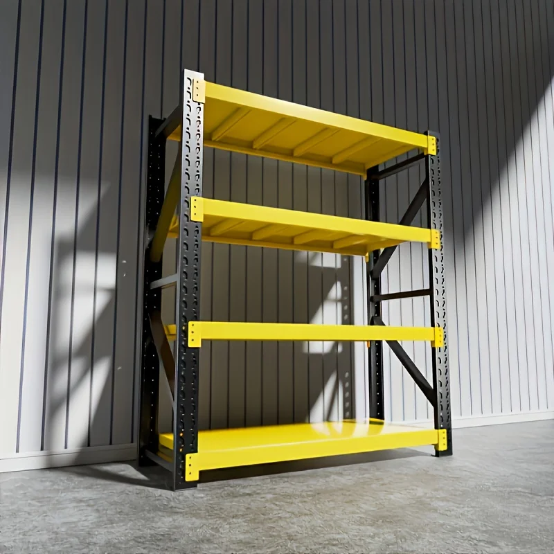 Heavy-duty 4-tier adjustable metal garage rack: 78.8"H, 47.2"W×19.7"D×78.8"H, Black, durable painted metal, for warehouse/gym/ba
