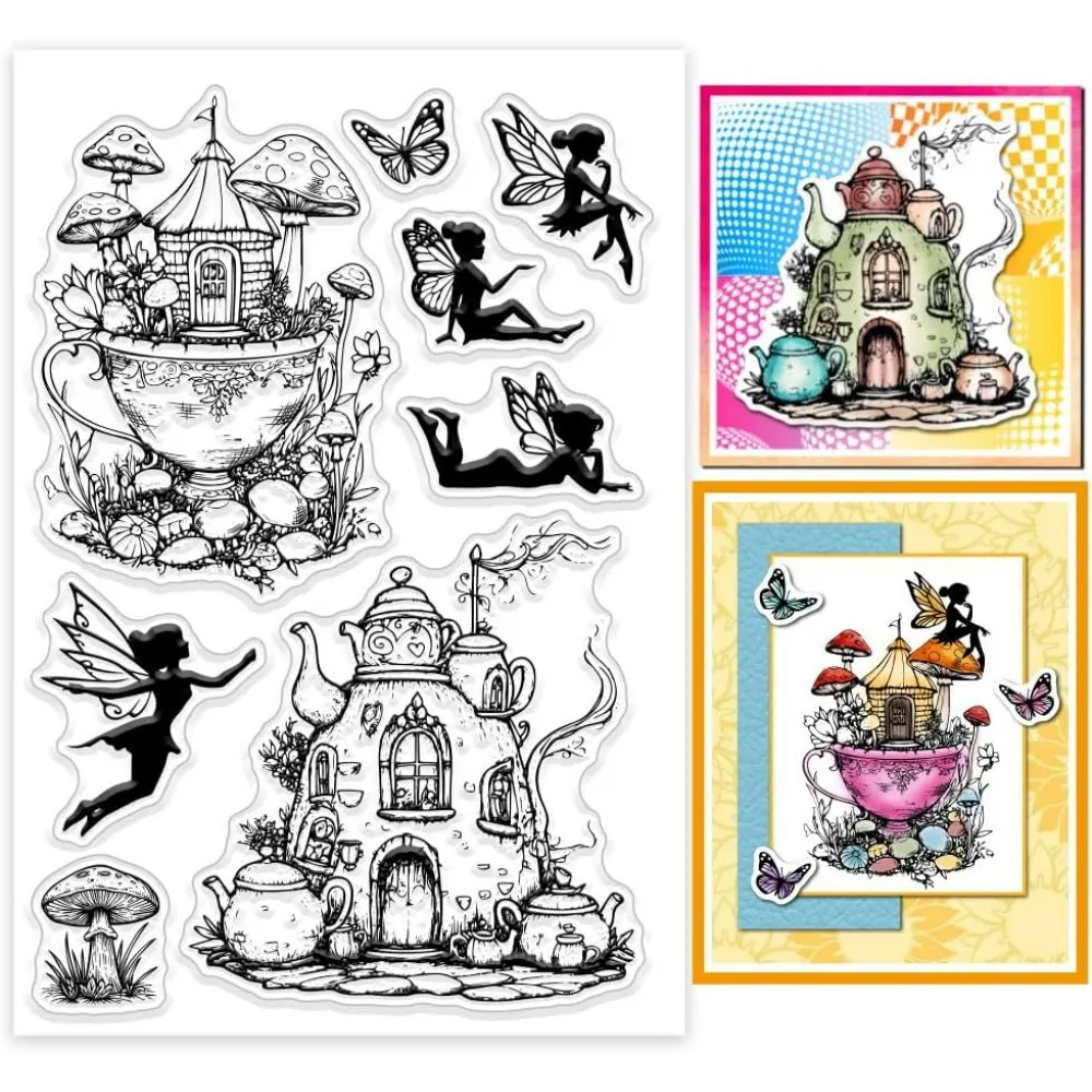 1pc Teapot Cup House Clear Stamps Fairy Mushroom Silicone Clear Stamp Seals Transparent Stamps for DIY Scrapbooking