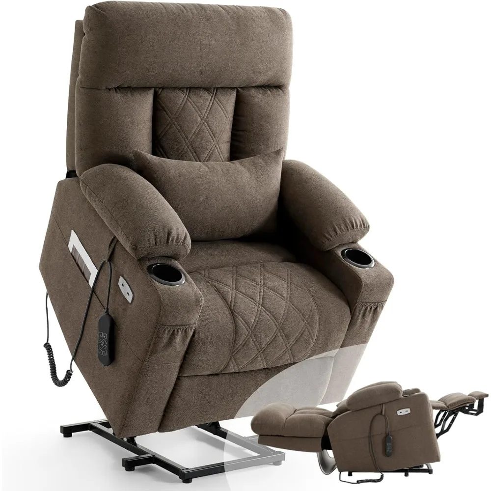 Power Lift Recliner Chair for Elderly with Extended Footrest, Infinite Position Lay Flat Recliner Chair for Adult W/Massage & He