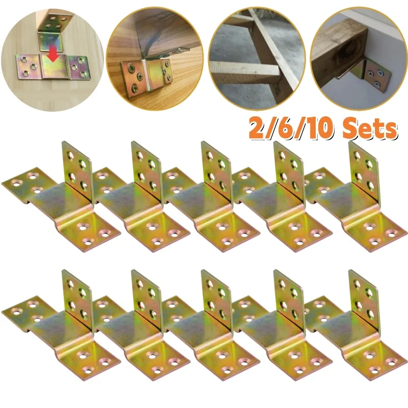 2/6/10 Sets Heavy-Duty Solid Wood Bed Frame Hardware Kit, Metal Bed Rail Brackets, Wooden Frames Corner Bracket with Hook & Buckle