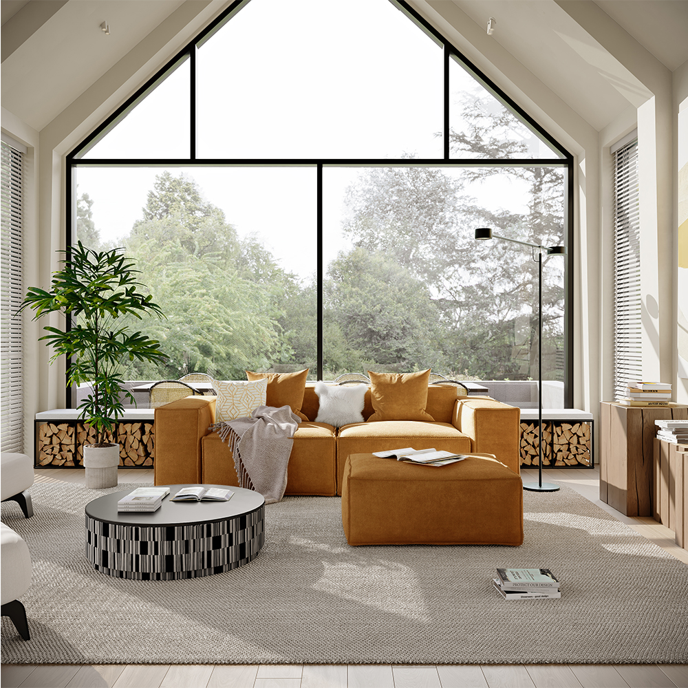 83.86" Minimalist Modular Sofa with Ottoman, Deep Seat Couch, Anti-scratch and Water-proof, Living Room Sofa, Yellow