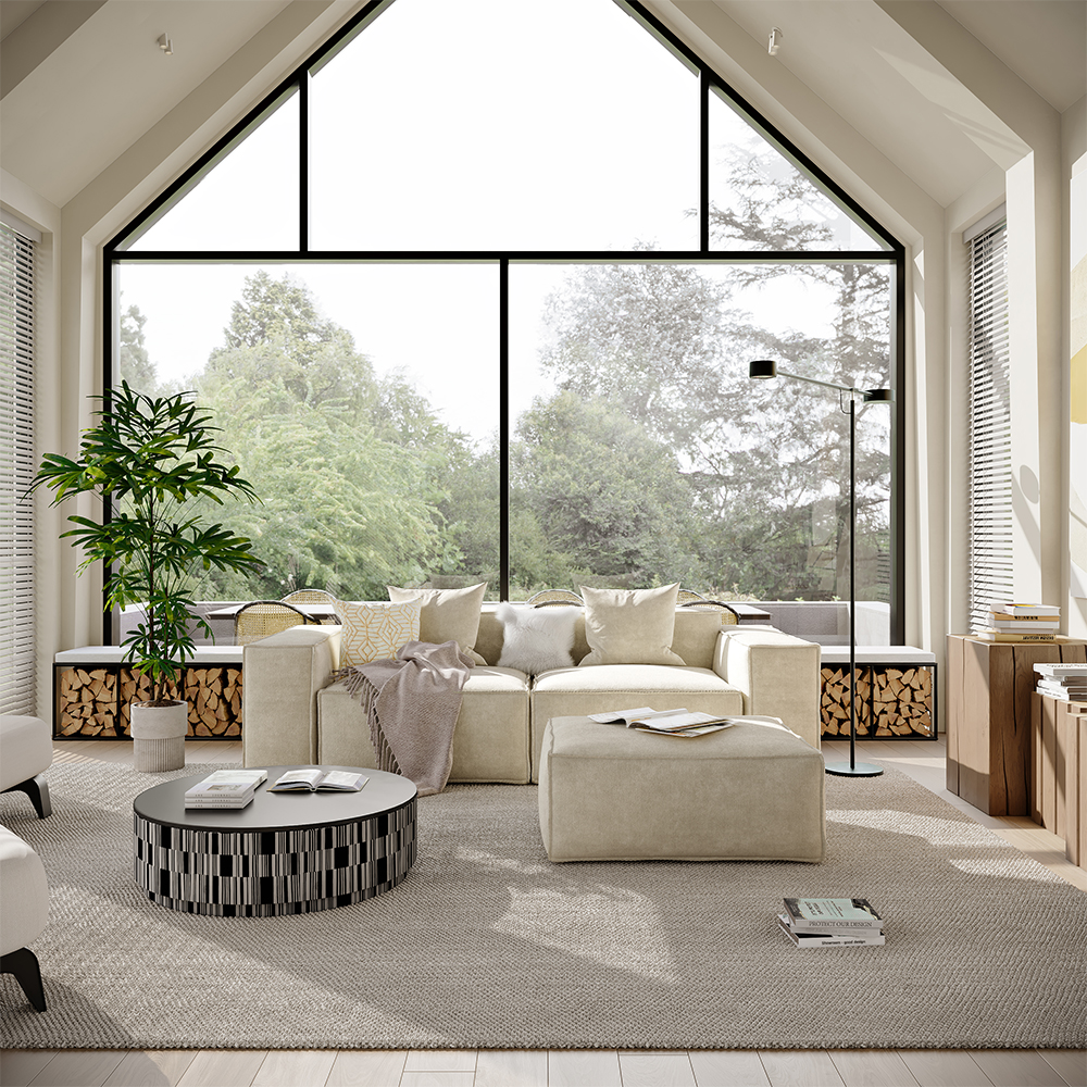 83.86" Minimalist Modular Sofa with Ottoman, Deep Seat Couch, Anti-scratch and Water-proof, Living Room Sofa, Beige