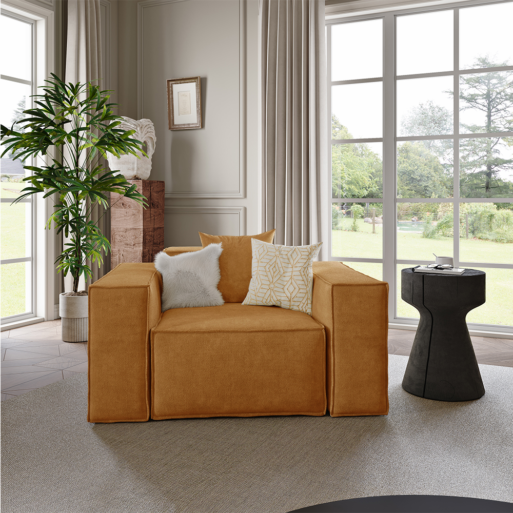 51.96" Minimalist Accent Chair, Deep Modular Sofa, Cat Proof Couch, Anti-scratch and Water-proof, Yellow