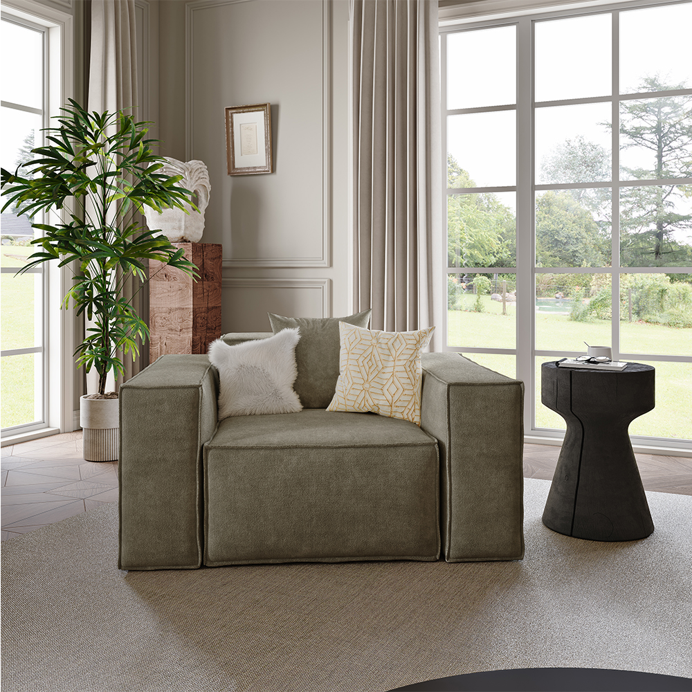 51.96" Minimalist Accent Chair, Deep Modular Sofa, Cat Proof Couch, Anti-scratch and Water-proof, Khaki