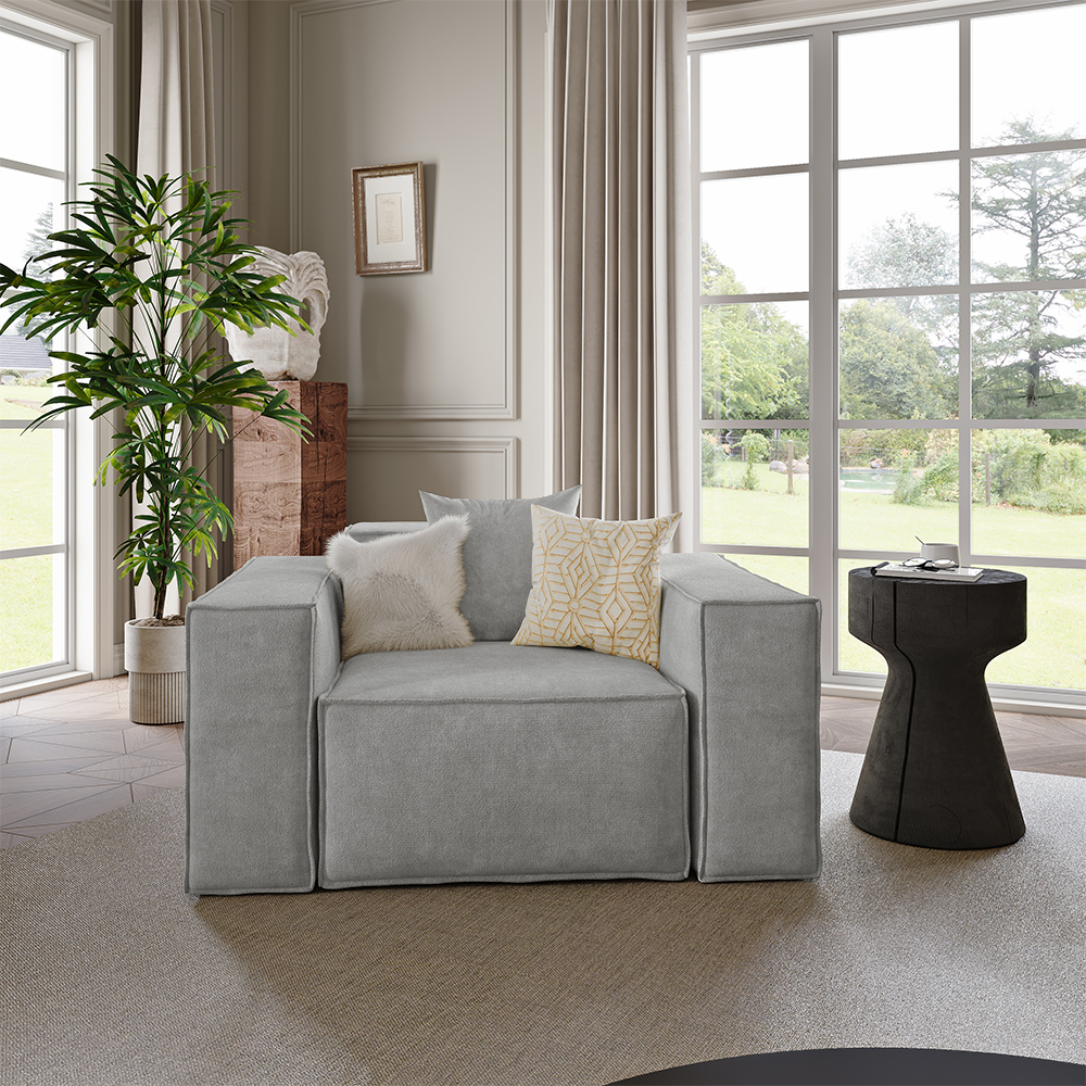51.96" Minimalist Accent Chair, Deep Modular Sofa, Cat Proof Couch, Anti-scratch and Water-proof, Light Gray