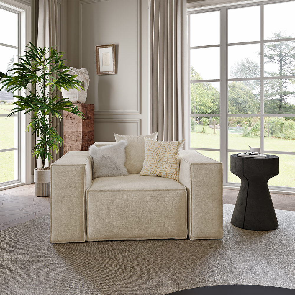 51.96" Minimalist Accent Chair, Deep Modular Sofa, Cat Proof Couch, Anti-scratch and Water-proof, Beige