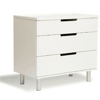 Oeuf Changing Station, sold separately, for a stylish and functional changing table. Then once diaper days are over, use it in your child's room as a dresser. Three slide-out drawers give you plenty of storage. Assembly required.