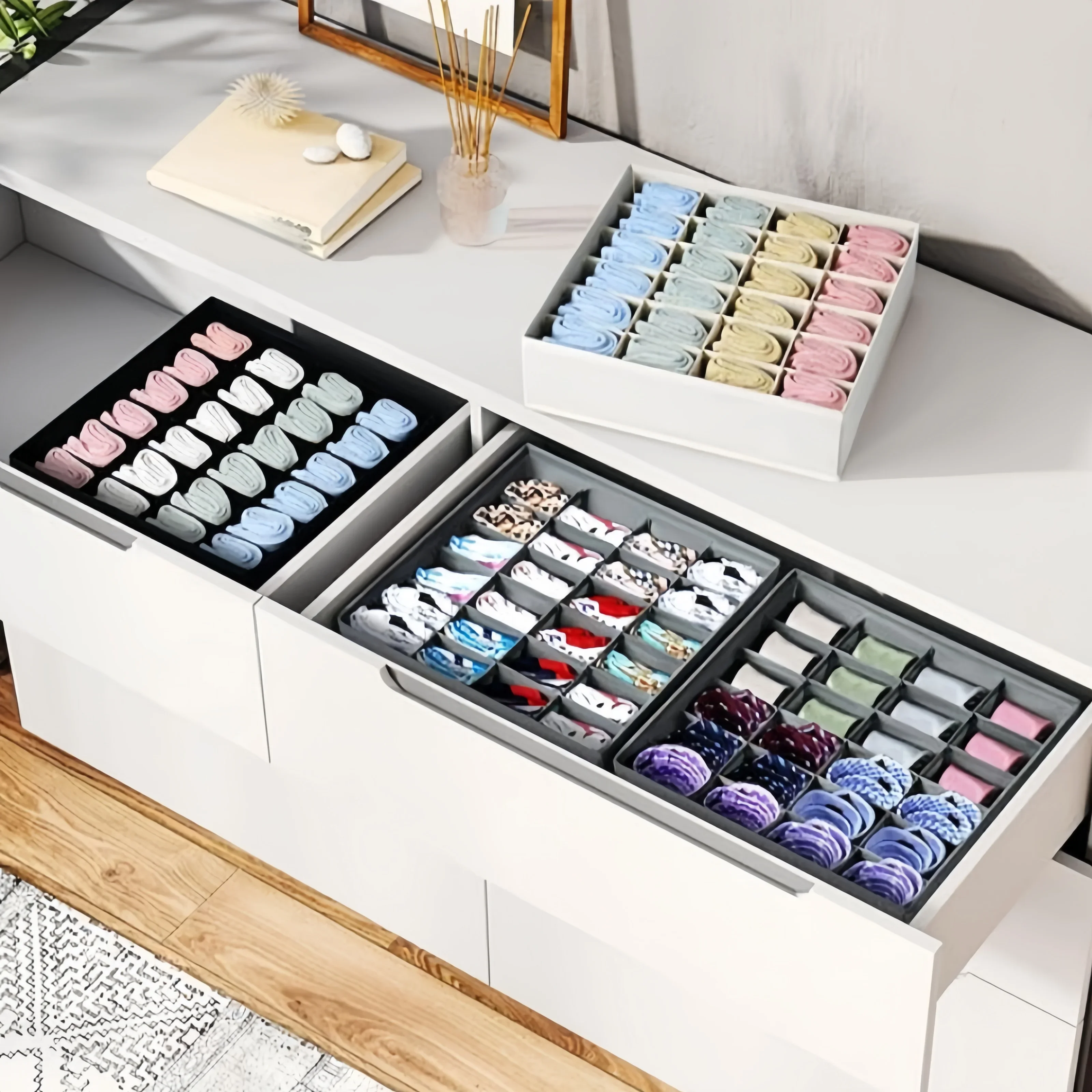 Sock Drawer Organizer Divider Underwear Organizer, 24 Cell Collapsible Closet Cabinet Organizer Underwear Storage Boxes
