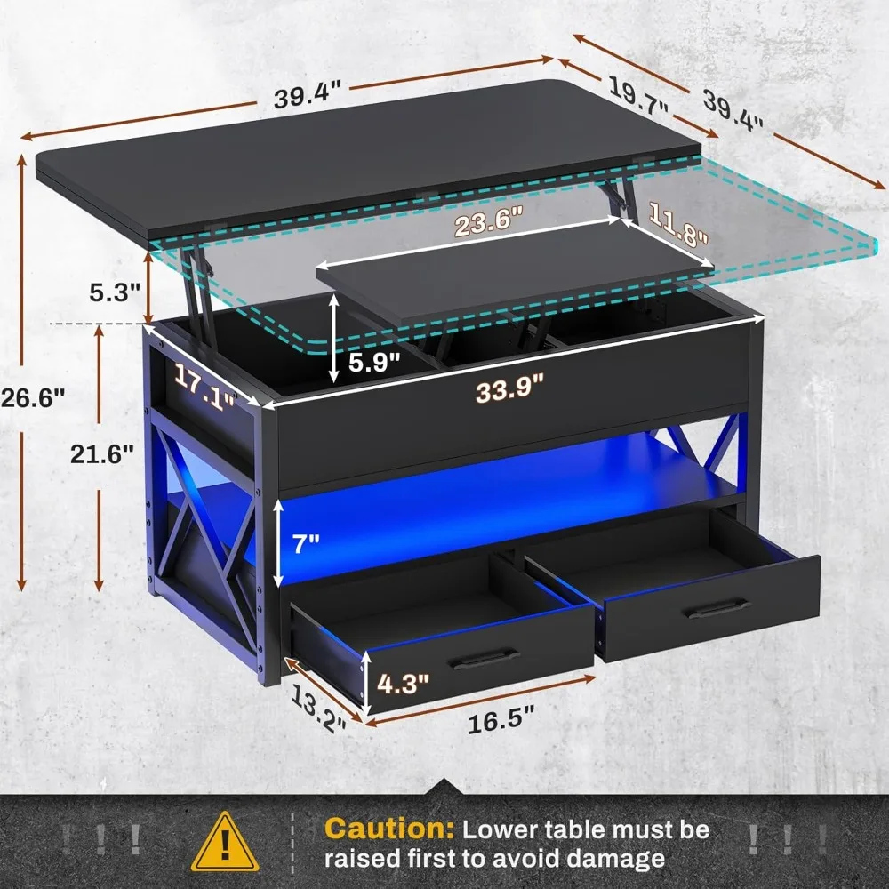40 lift coffee table, 4-in-1 coffee table, small farmhouse coffee table with living room storage space and 2 drawers