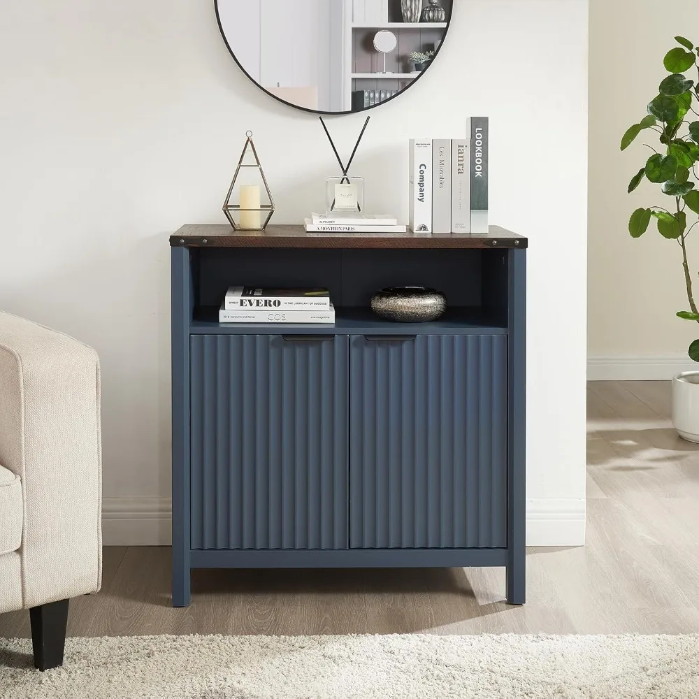 Modern Farmhouse Style 32 Inch Fluted Sideboard with Storage and Adjustable Shelves, Perfect for Coffee and Wine Bar