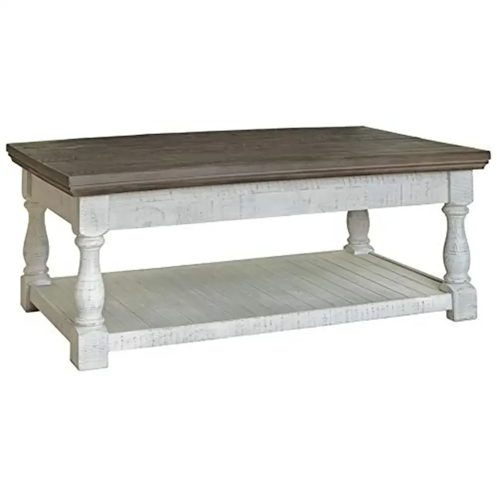 Farmhouse Weathered Gray & White Coffee Table with Lift Top and Hidden Storage Trays Solid Pine 50"W x 28"D x 19"H