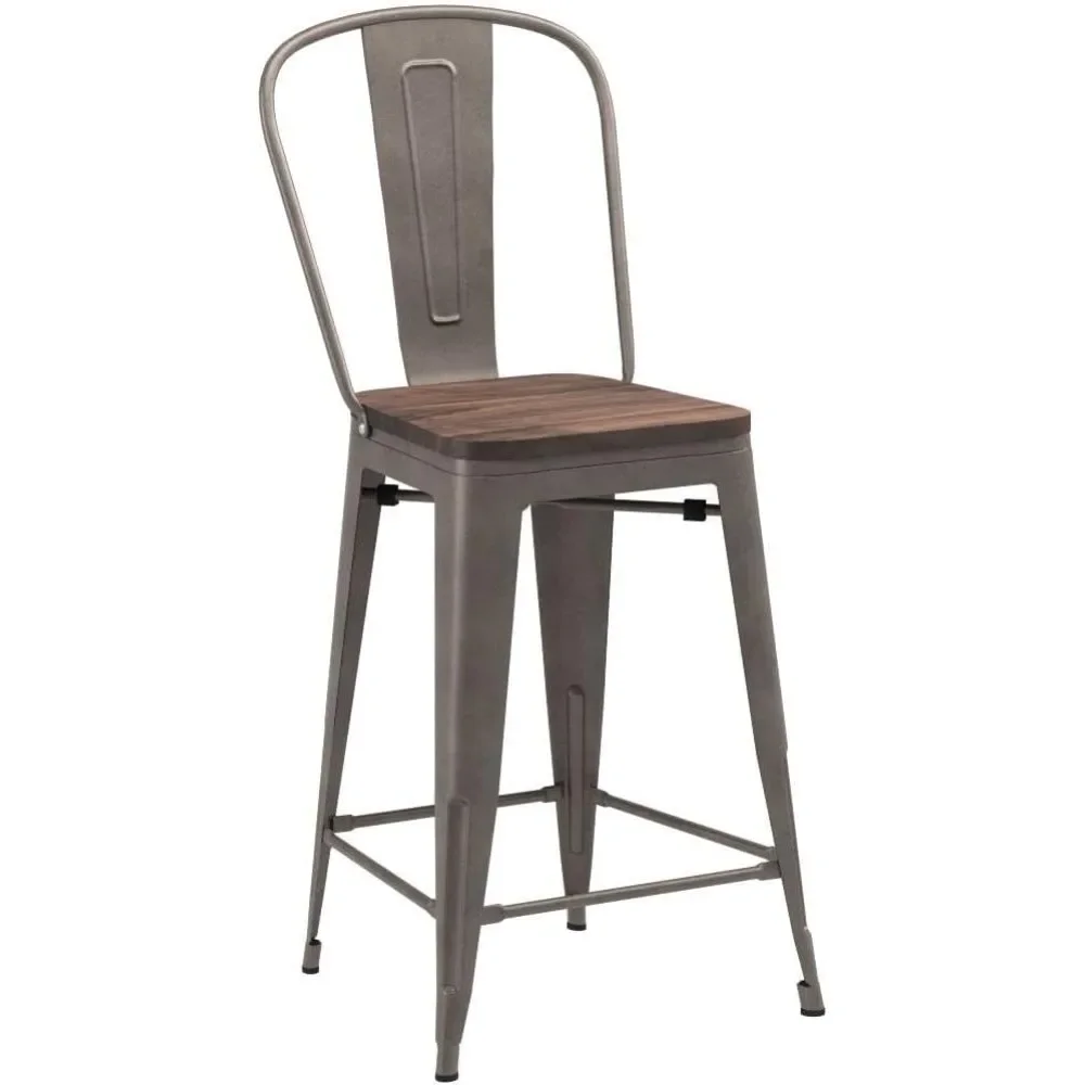 Set of 4 Industrial Bar Stools - 26" Counter Height with High Back, Large Wooden Seat & Metal Frame - Rustic Kitchen Stools​