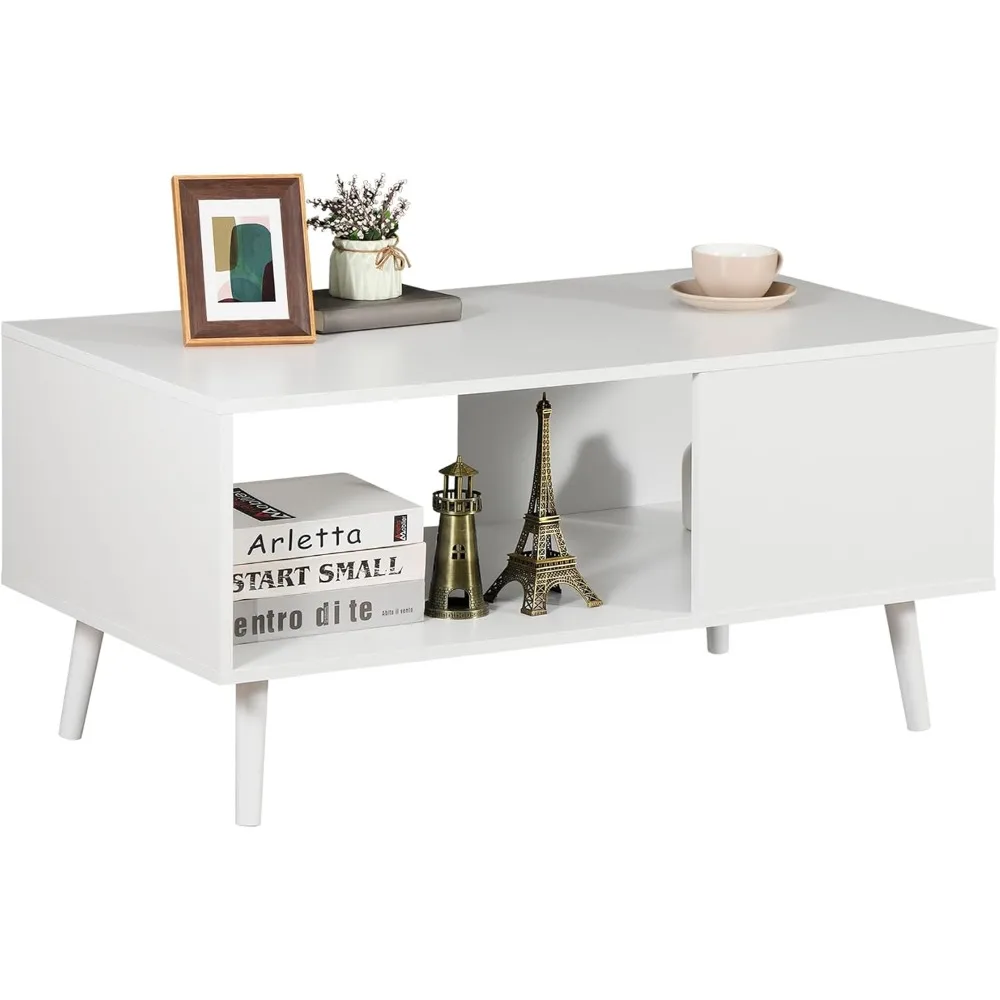 Mid Century Modern Coffee Table, Wooden Retro Coffee Table with Open Storage Shelf for Living Room, Reception, Easy Assembly  Read more