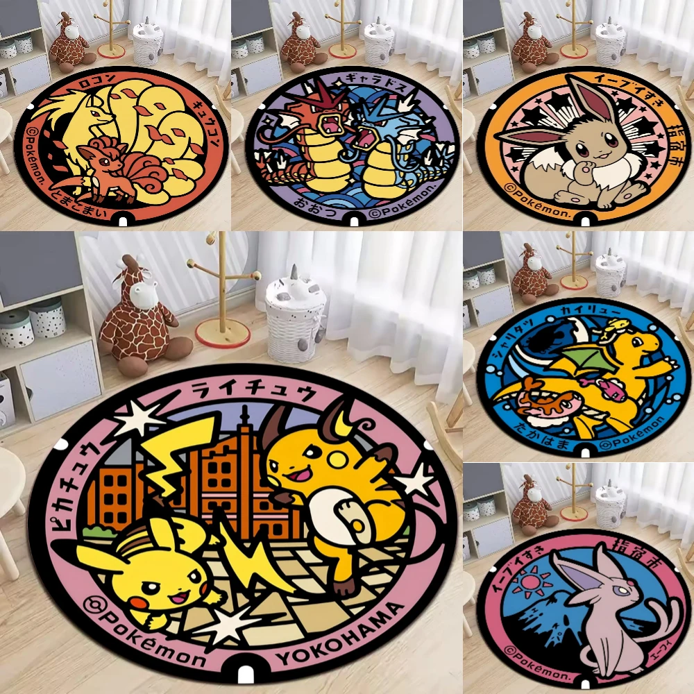 MINISO Pokémon Pikachu Round Rugs for Living Room Sofa Rug Bedroom Rug Man's Cave Game Room Swivel Chair Floormat Kid's Play Mat