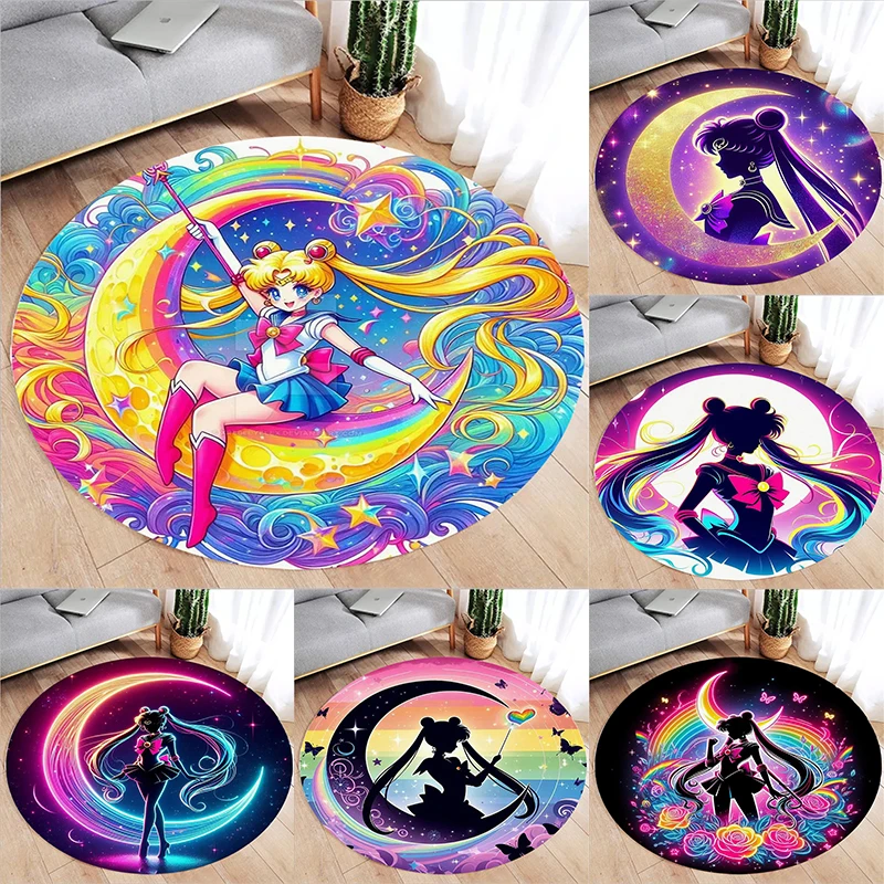 MINISO Sailor-Moon Print Round Rugs Kids Room Floor Mats Non-Slip Living Room Rugs Washable Carpet for Home Decor Mat