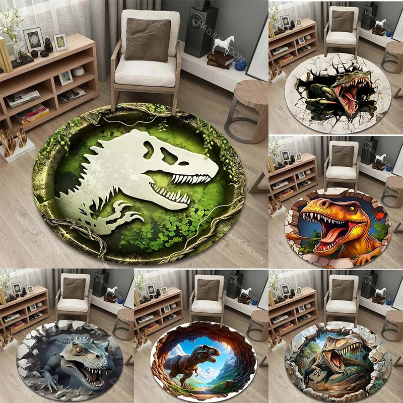 3D Dinosaur Print Round Rugs for Bedroom Area Floor Mats for Kids Room Bath Chair Mat Carpet Living Room Home Decor for Gifts