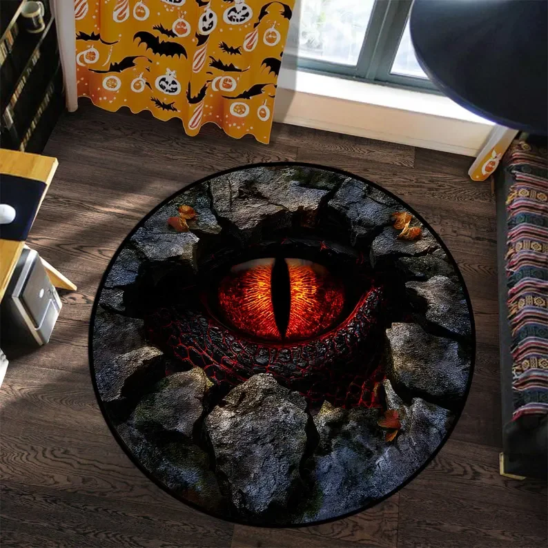 Printed Faux 3D Dragon Eye Round Rug Scary Printed Illusion Dragon Eye Design Creepy Dragon Lover Fantasy Floor Decor