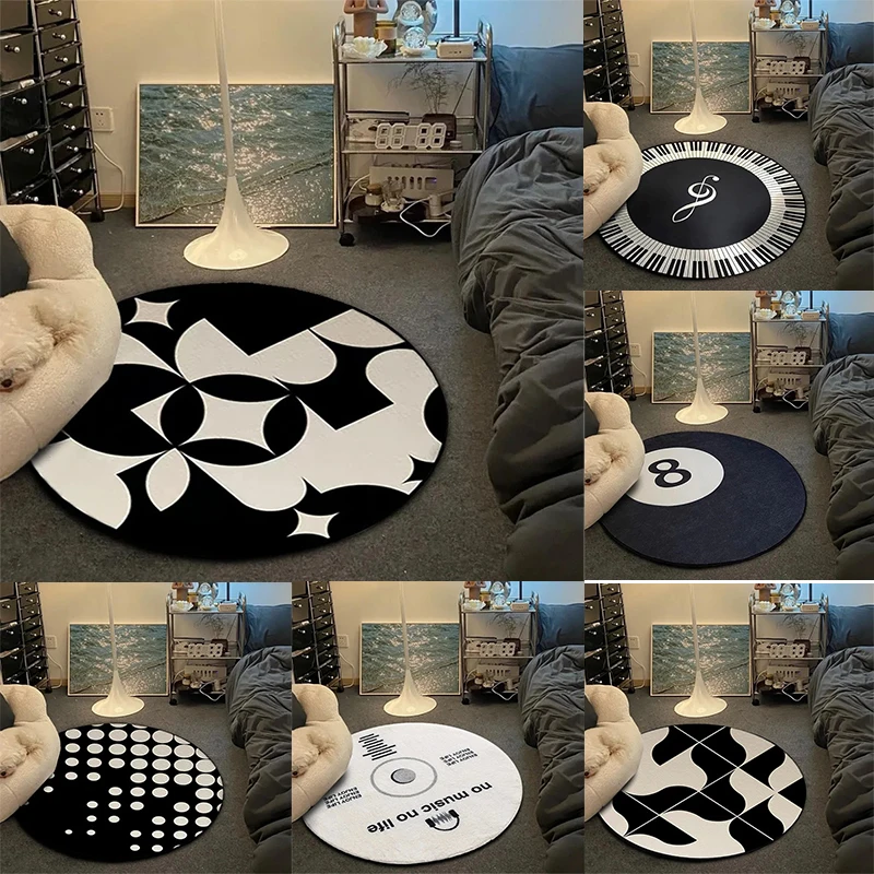 Flannel Cream Black-White Style Round Carpet Clothing Store Decorative Floor Mat Bedroom Living Room Home Decoration