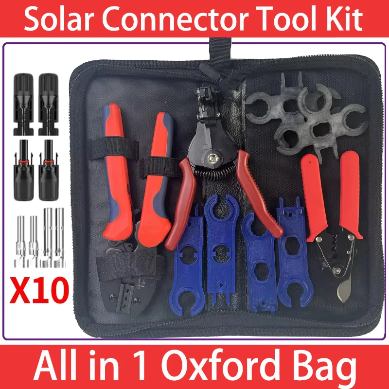 Solar Panel PV Cable Crimping Tool Kit for AWG14-10 2.5/4/6mm² with Stripper, Cutter, Solar Spanner and Solar Connectors