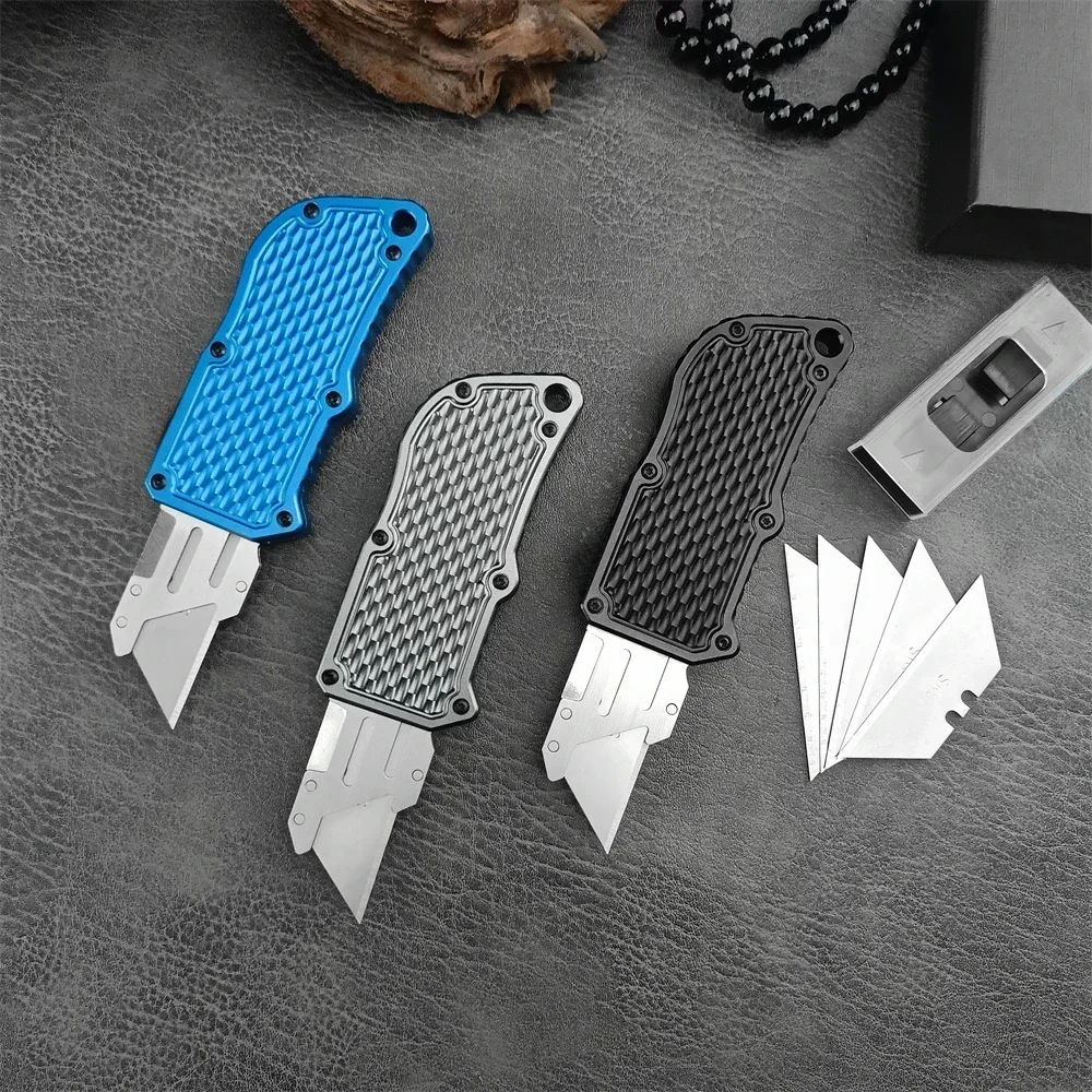 Boxs Cutter Outdoor Quick Open Folding Knife 440C Blade Aluminum Handle with 5PCS Replacement Blade Tactical Knife EDC Tool
