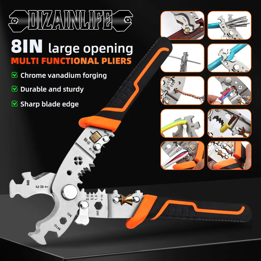 8 In 1 Cable Cutting Wire Stripper 8 Inch Scissor Stripping Pliers Cutter Multifunctional Large Opening Cutting Scissors Tool