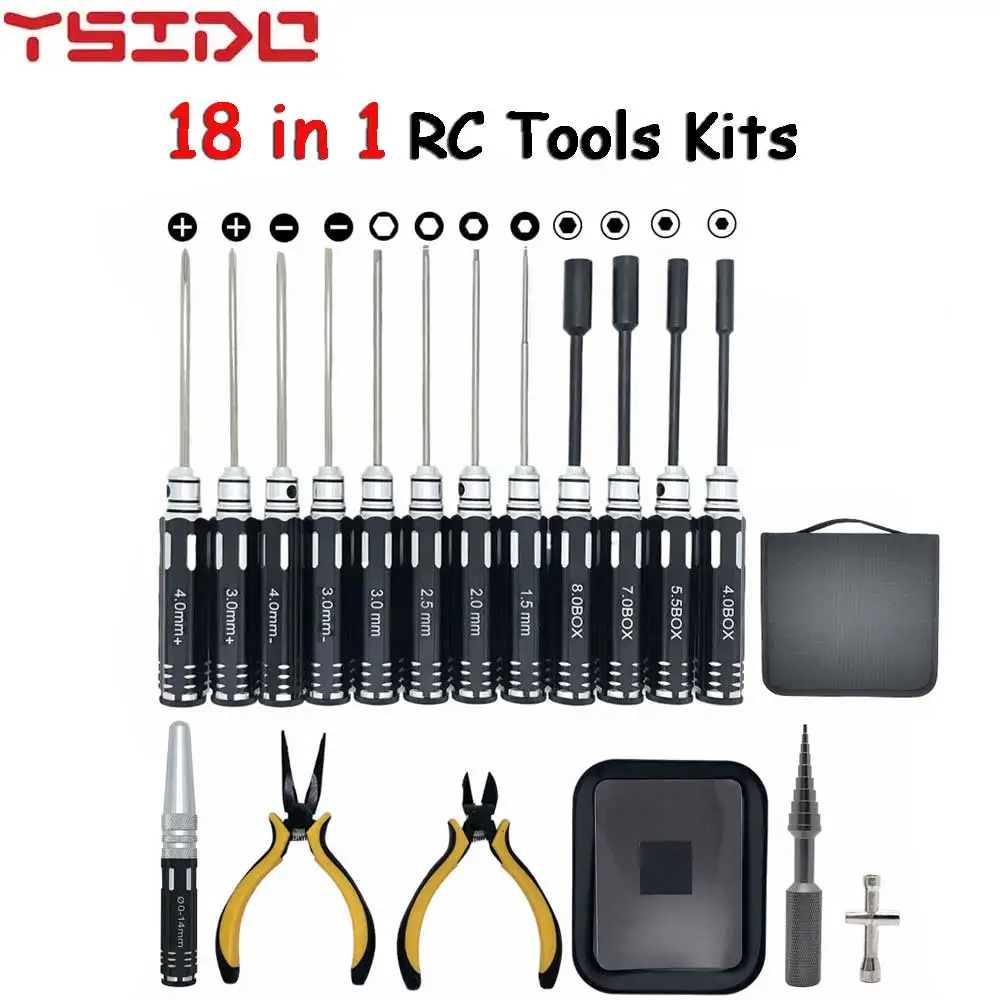 RC Tools Kits 18 in 1 Screwdriver Pliers Hex Sleeve Socket Spanner Repair Box Set for Repairing RC Airplanes Rc Car Model Toys