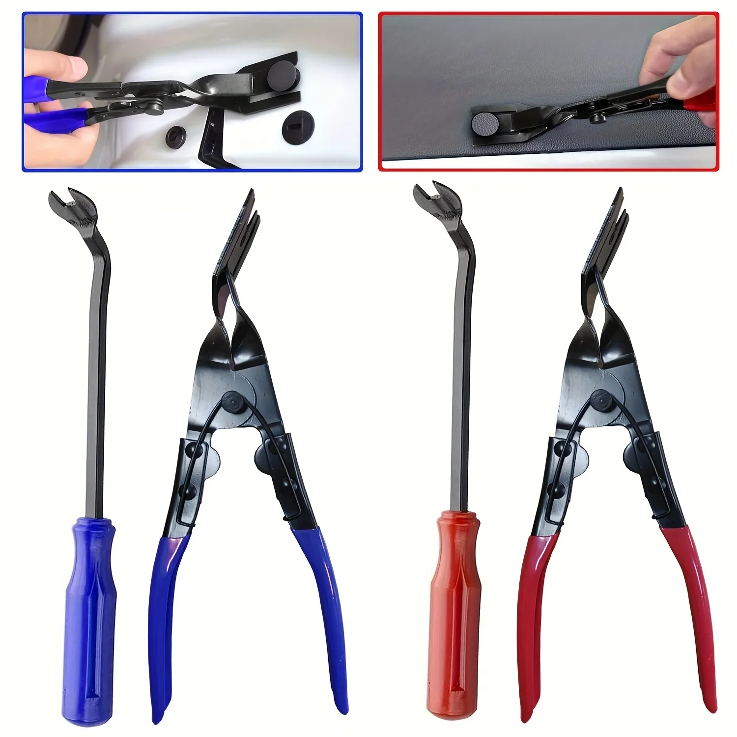 2Pcs Auto Fastener Trim Removal Tool Kit Repair Tools Car Disassembly Kit Clip Screwdriver Light Pliers Door Panel Tool Set
