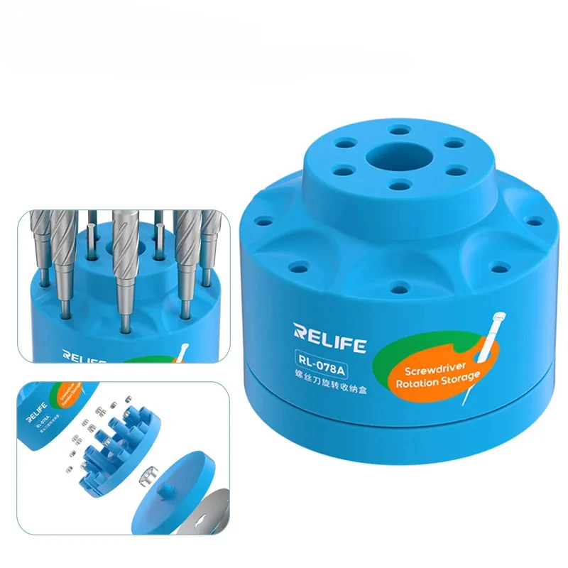 RELIFE RL-078A Screwdriver Rotating Storage Box for Mobile Phone Repair Multiple Holes Soldering Iron Tips Storage Holder Tool