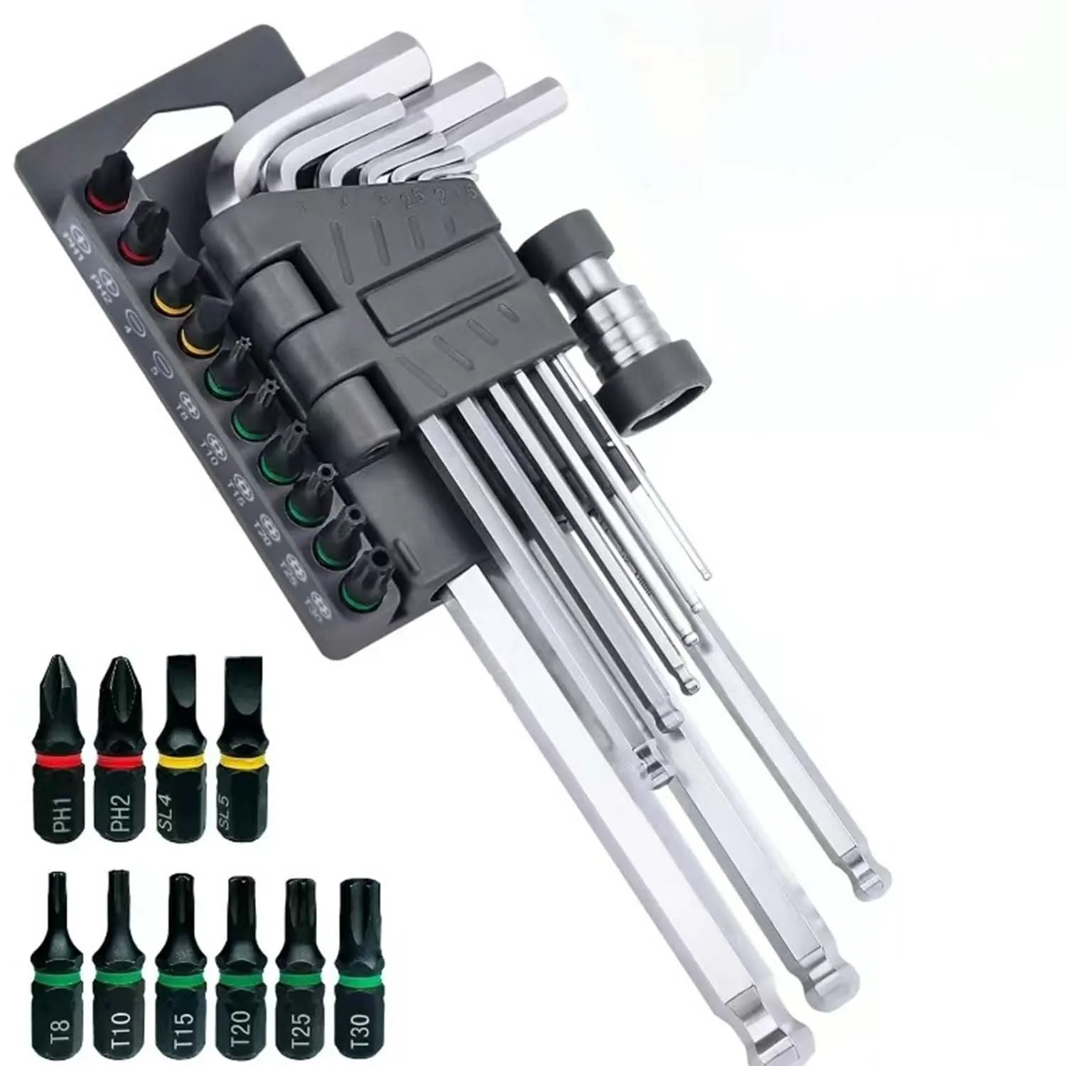 20In1 Metric Allen Wrench Set Bit Adapter with Screwdriver Head S2 Steel HEX/TORX/BALL END Hex Point Tips for Furniture&DIY Etc.