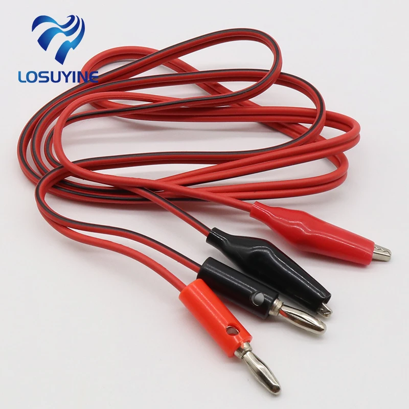 4mm Injection Banana Plug To Shrouded Copper Electrical Clamp Alligator Clip Test Cable Leads 1M For Testing Probe