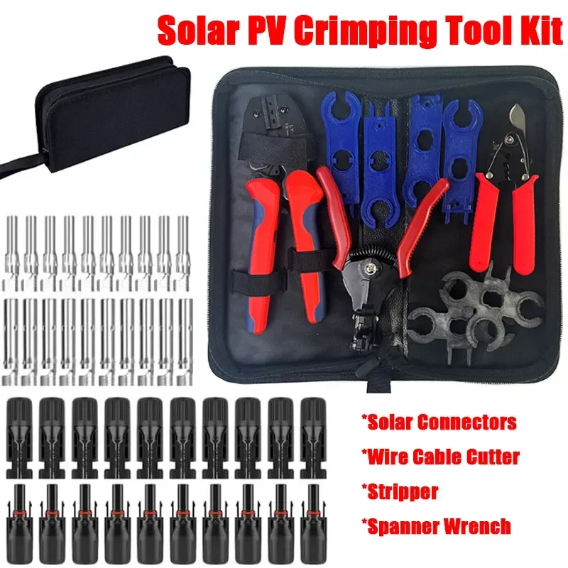 Solar Crimping Tools Kit Photovoltaic Cable Connector SN-2546B Clamp Terminal Pliers Coax Crimping PV Panel Connectors, Wrench