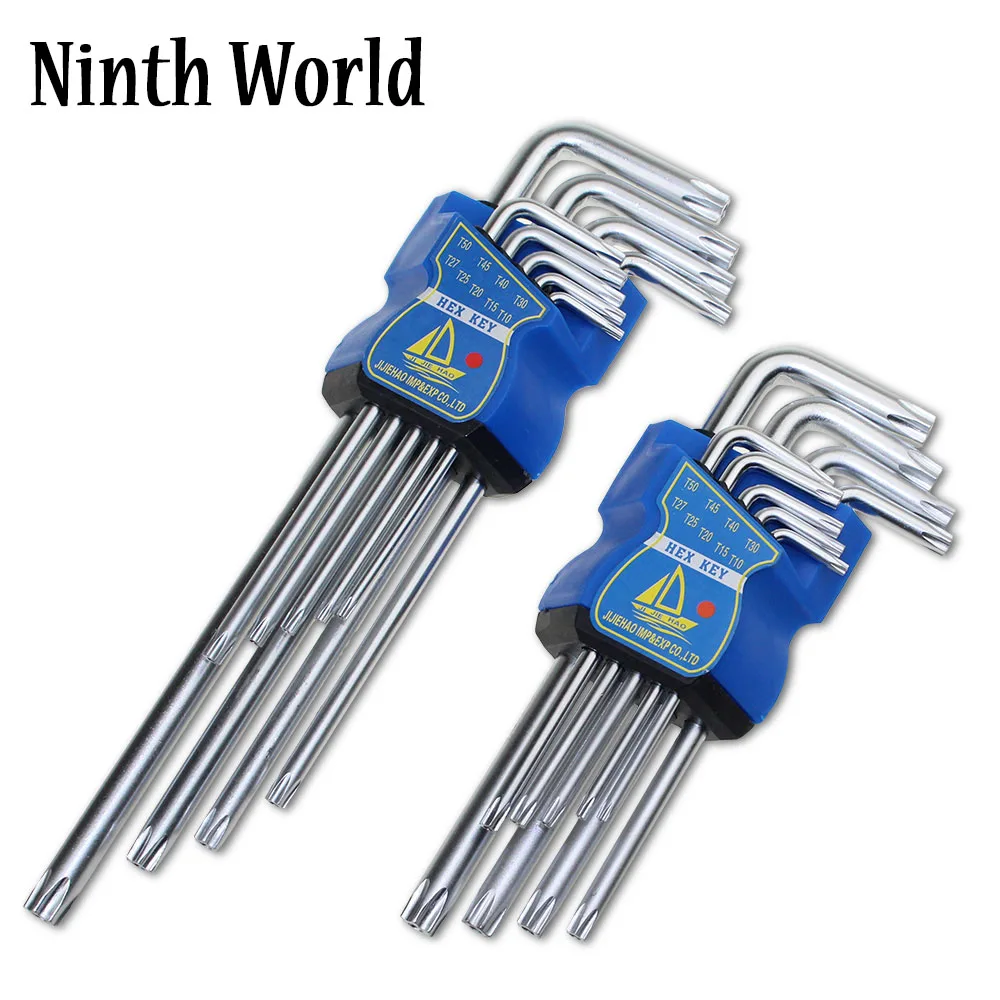 9Pcs Box End Wrench Tool Set Anti Tamper Proof Torx Key Bit Wrench L-Shape T10 T1 T20 T25 T27 T30 T40 T45T50 Length Type 2 Size
