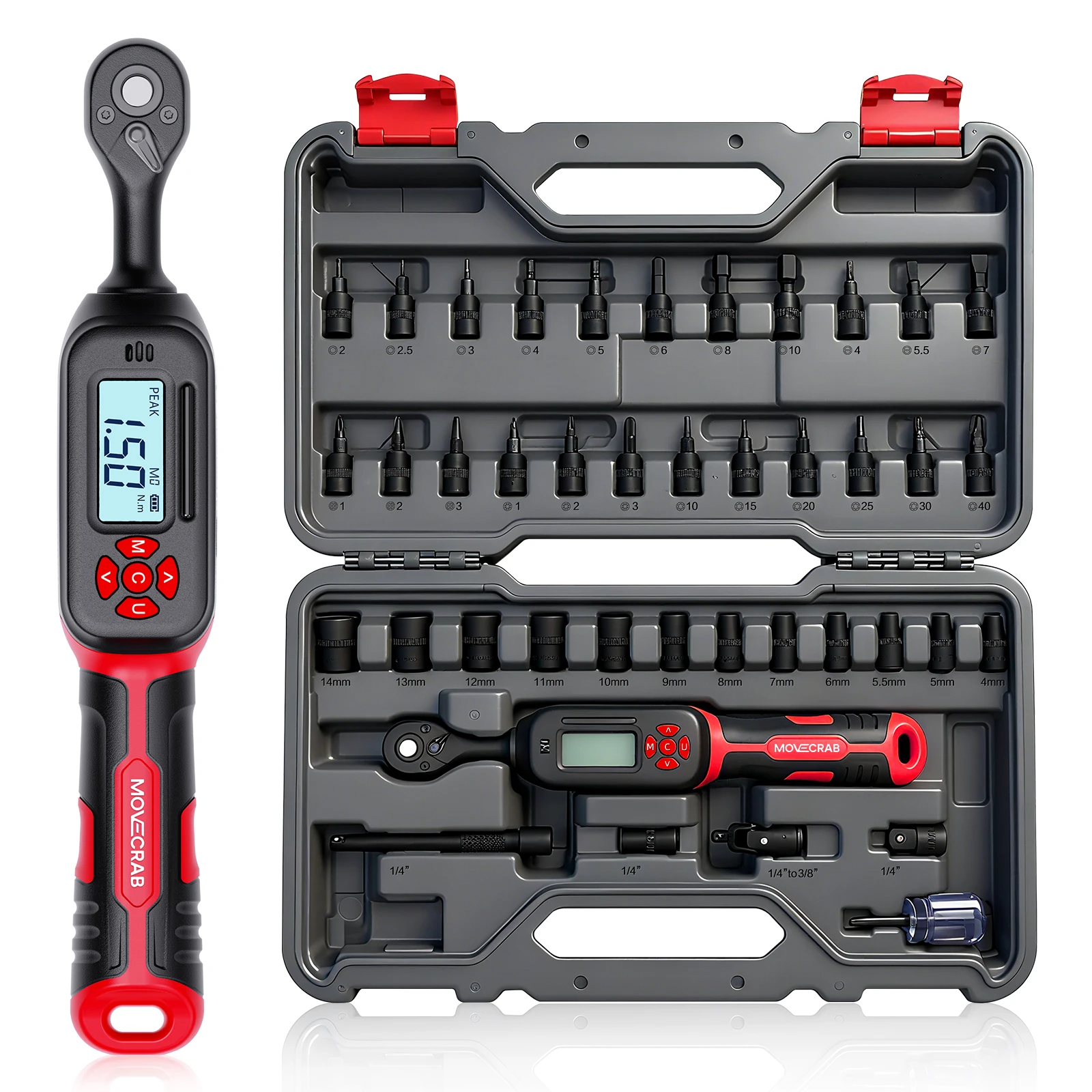 Digital Torque Wrench 1/4 Inch Drive 1.5-30 N.m 1-22 Ft.lb 40Pcs Bike Tool Set with Sockets Bits LED Buzzer for Motorcycle Car L