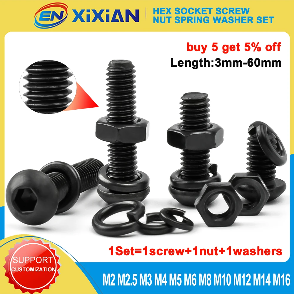 M2M2.5M3M4M5M6M8 Hex Socket Allen Round Head Screw and Nut with Washes Black Carbon Steel DIY Motorcycle Fairing Bolts ISO7380  Read more