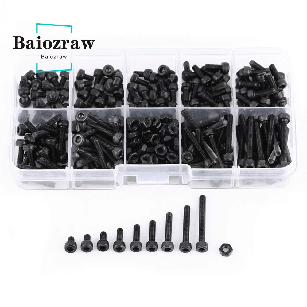 3D Printer Screw 280 pcs M3 Cap Head Hex Socket Bolt Screw Nut DIN912 Black Steel l Hexagon Cylinder Bolt Kits