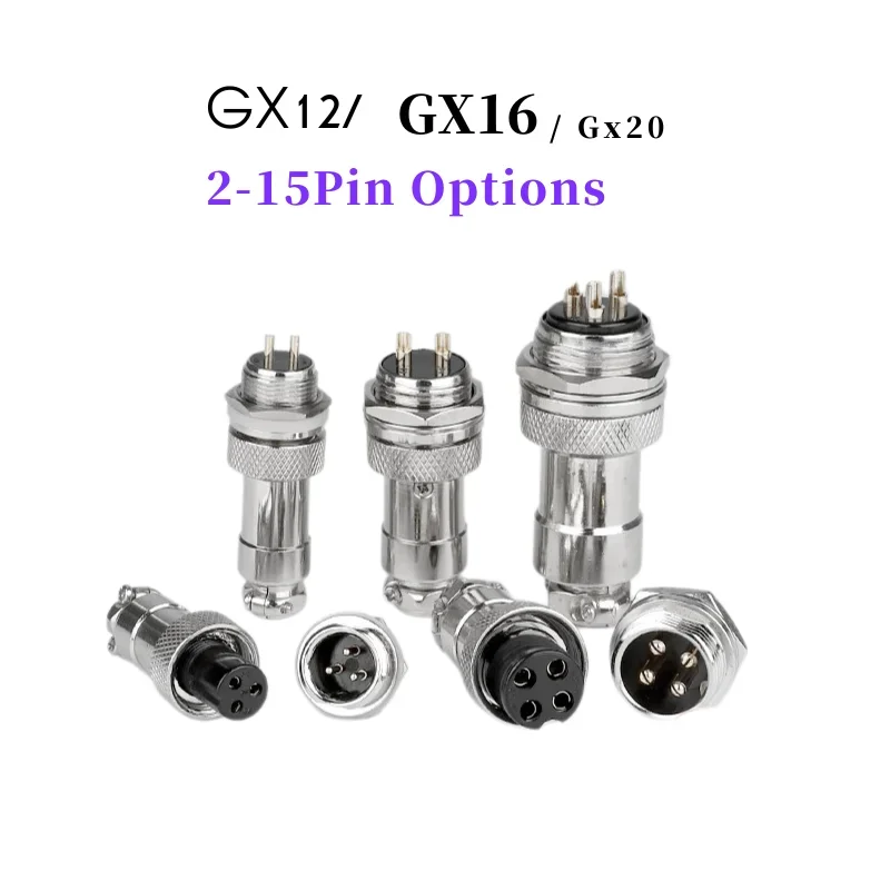 Selected 5/10/20 Sets of GX12 GX16 GX20 Waterproof Circular Aviation Plug Sockets, Rich Specifications of 2 - 15 Pins