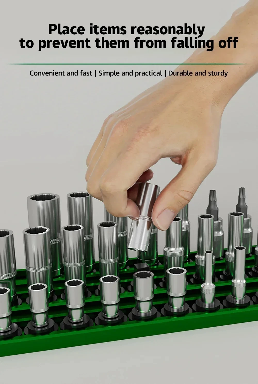 Socket Holder Magnetic 360° Rotating Plug Plate 1/4 3/8 1/2 Inch Green Multi-function Disassembly Repair Storage Tool for Car