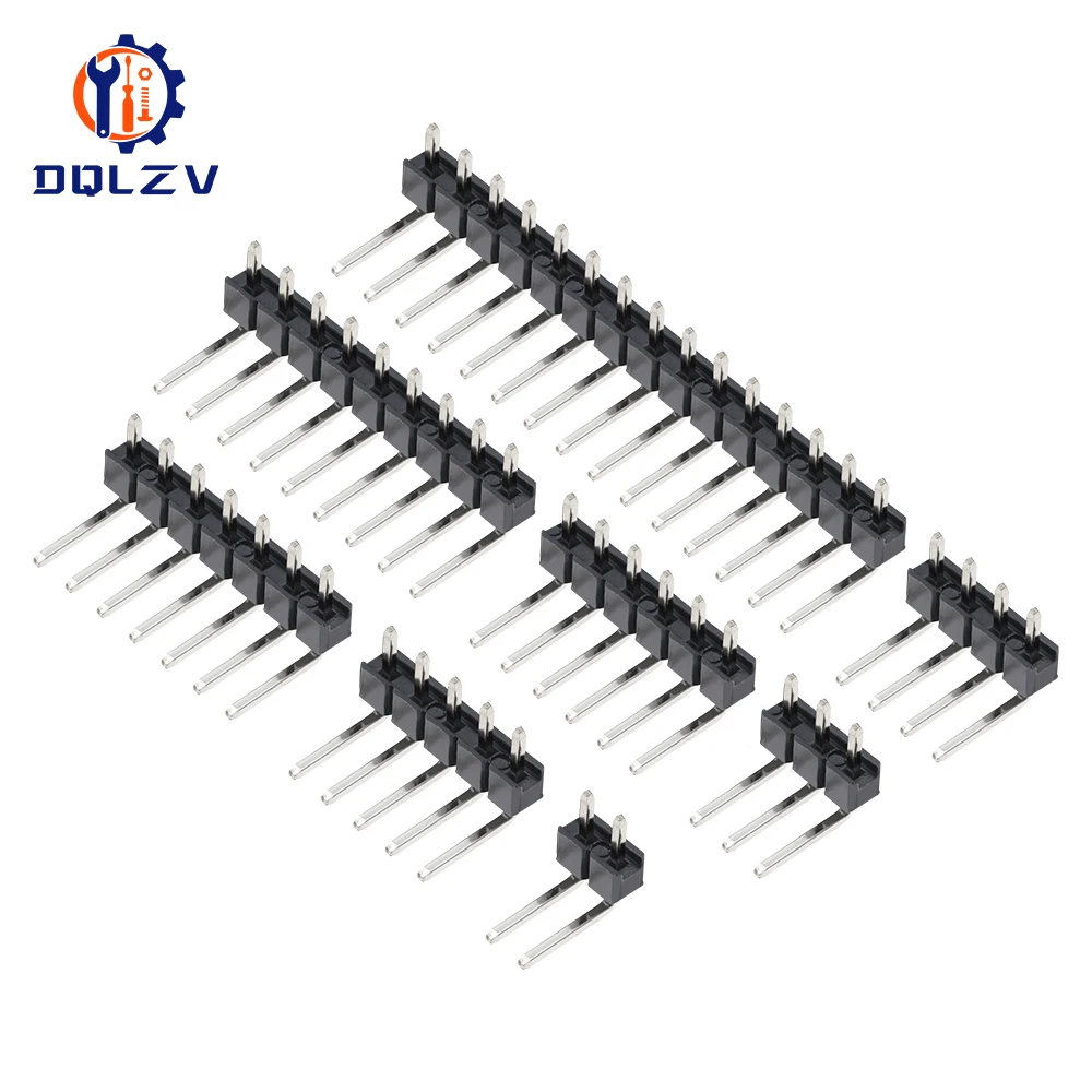 Connector Socket 2.54mm Pitch Strip 1X/2/3/4/5/6/8/10/40 Pin Single Row Right Angle Male Pin Header 3P/4P/6P/8P/20P/40Pin
