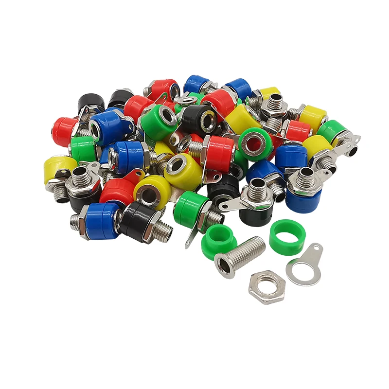 50Pcs 4mm Banana Socket Binding Post Test Connector Terminals Kit 4mm Banana Female Plug Jack DIY Nut Panel Mount Adapter