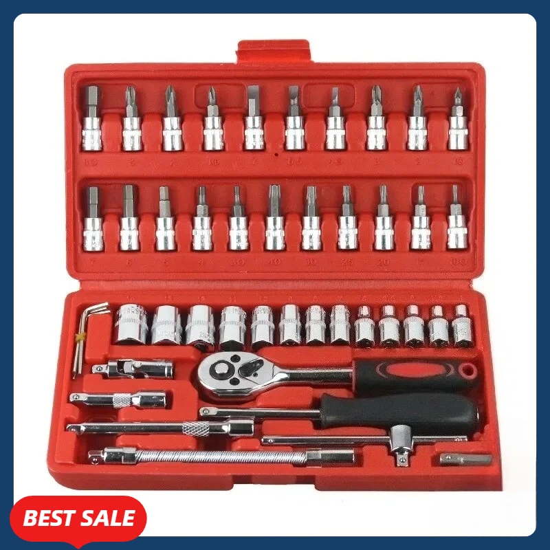 1/4-Inch Socket Set 46pcs - Mechanic Car Repair Tool Kit with Ratchet Torque Wrench