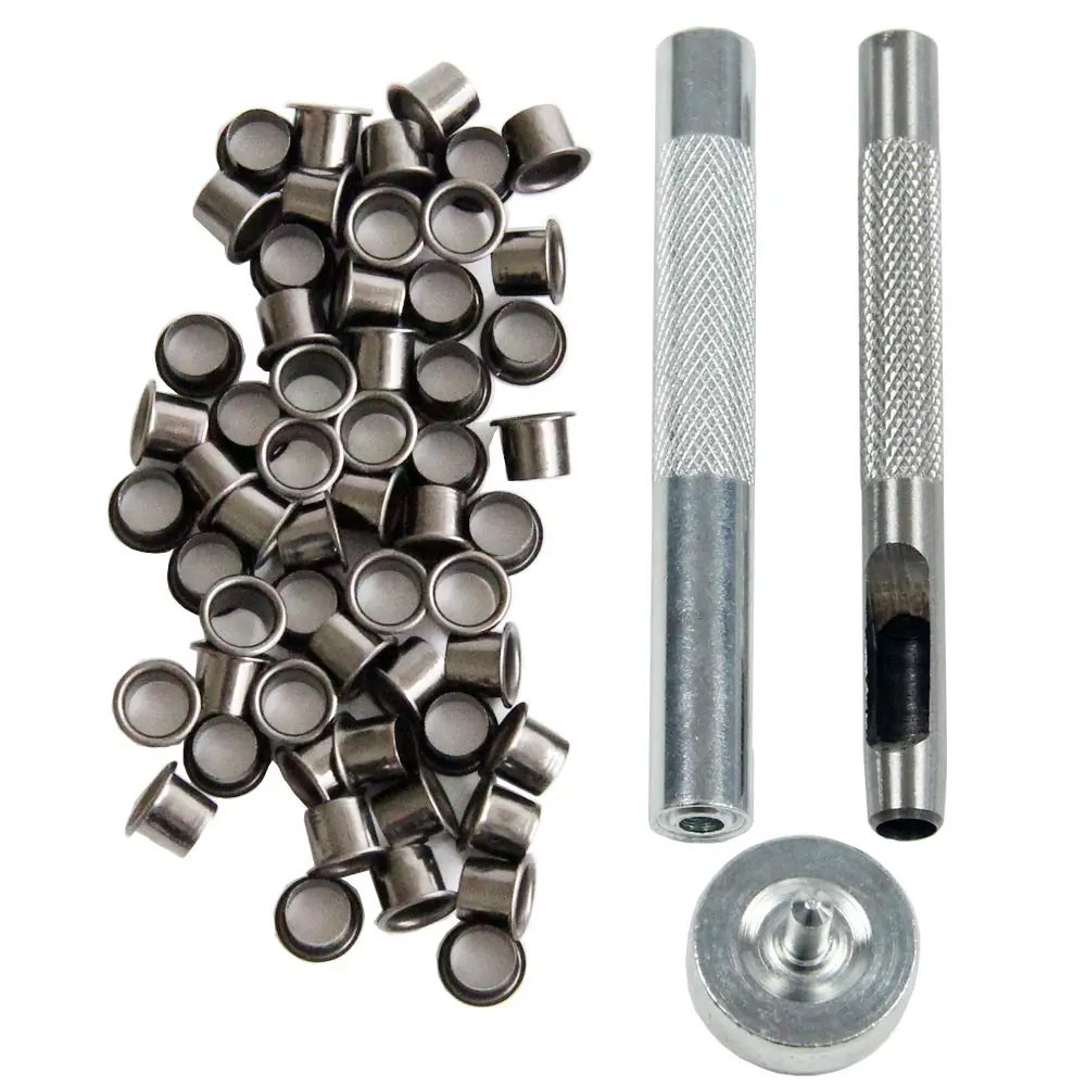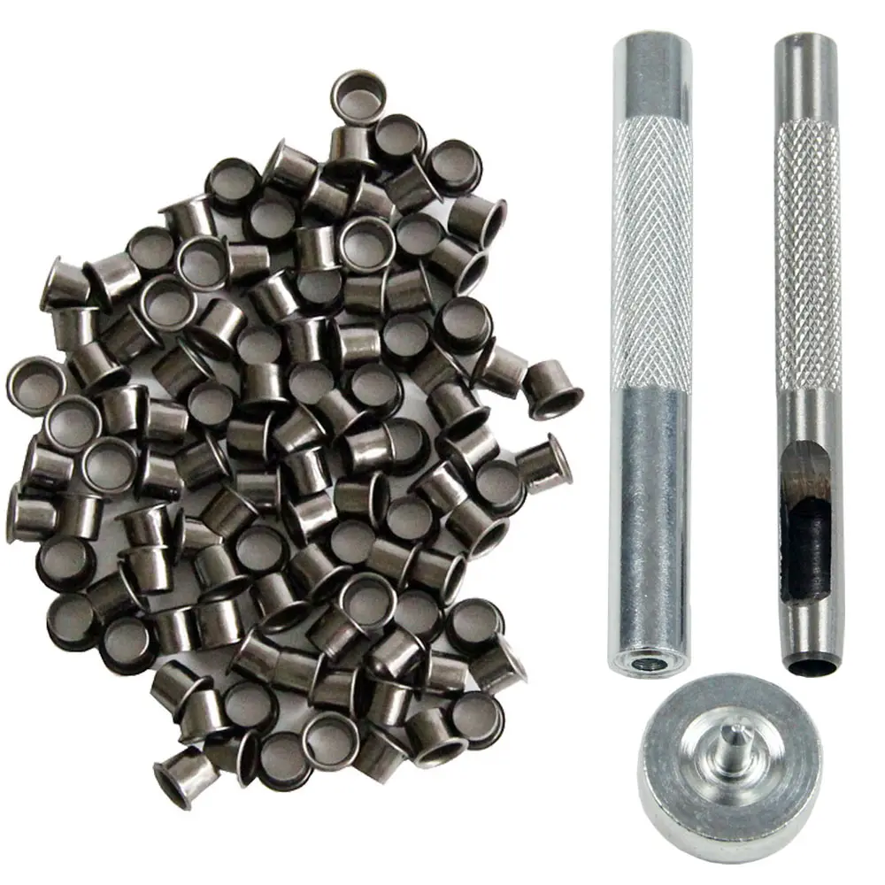 Eyelet Hole Punch Tool Kit with 50 eyelets 6mm 7mm Gunmetal Finish for DIY Kydex Sheath Kydex Eyelet