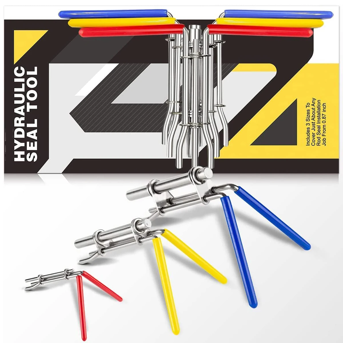 3PCS Hydraulic Cylinder Piston Rod Seal Installation Tool for U-Cup Seal Installer Tool Kit Seal Twistor Tools Repair Tools
