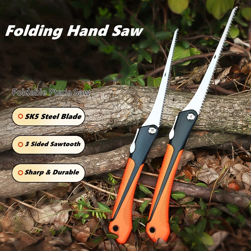 Manual Folding Saw, SK5 Steel One-Button Folding Design Hand Saw, Ergonomic Non-Slip Grip Handle, Sharp Cutting Wood, Garden Saw