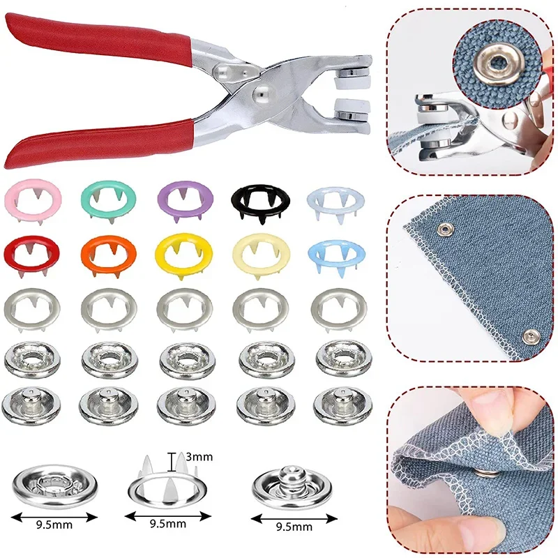 50/100Sets Metal Snaps Buttons with Fastener Pliers Press Tool Colored Claw Button Punch Eyelet Kit for DIY Craft Clothes Sewing