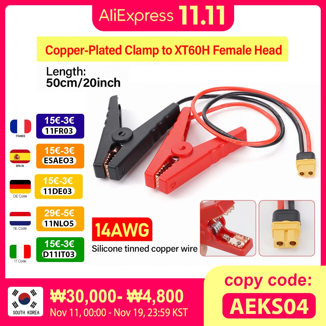 14AWG 50cm Alligator Clip to T Plug/XT60 Female Plug Cable Silicone Wire For Car Emergency Battery Clamps Trucks Accessory  Read more