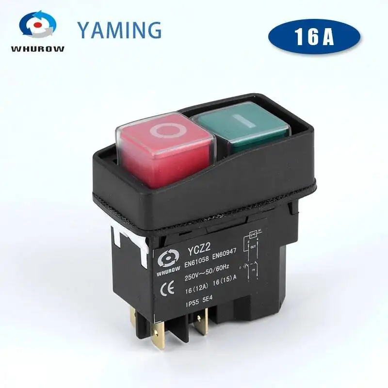 YCZ2 Electromagnetic Switch 4/5 Pin 110V/220V Momentary(Reset) On Off Red/green Push Button Emergency Stop Replace KJD17