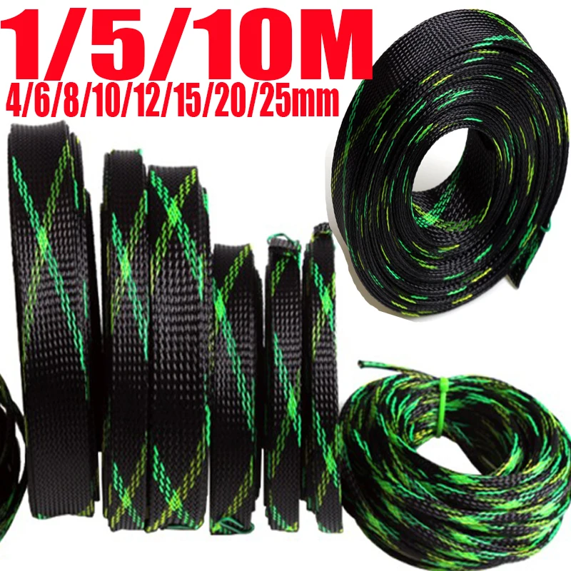 1/5/10M Insulation Braided Sleeve 4/6/8/10/12/15/20/25mm PET Cable Protection Wire Gland Cables Expandable Braided Sleeving